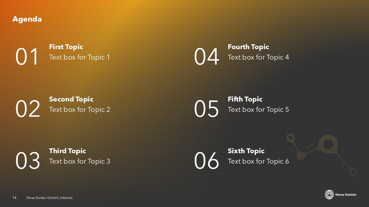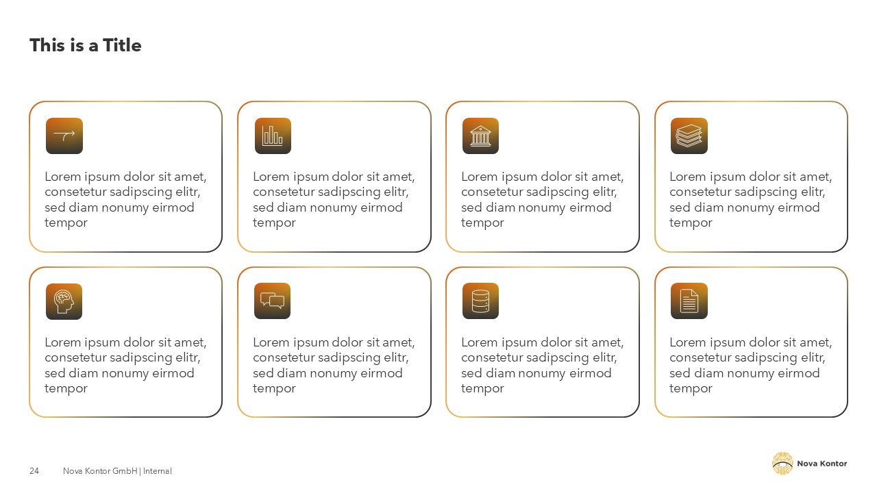 A complete template system the client's team can use independently. No designer needed for day-to-day updates. Every slide is consistent, on-brand, and ready to present.
