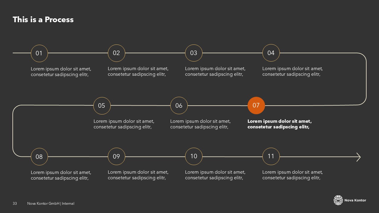 I started by defining a clear visual hierarchy, one that would work across very different slide types: title slides, data-heavy layouts, team pages, and executive summaries. The color palette was built around the client's brand, with neutral tones that keep the focus on content. Typography was chosen for legibility at all screen sizes, and every layout was designed to be editable without breaking the overall look. The template combines light and dark background slides, giving the client the flexibility to adapt the presentation to different contexts and audiences.