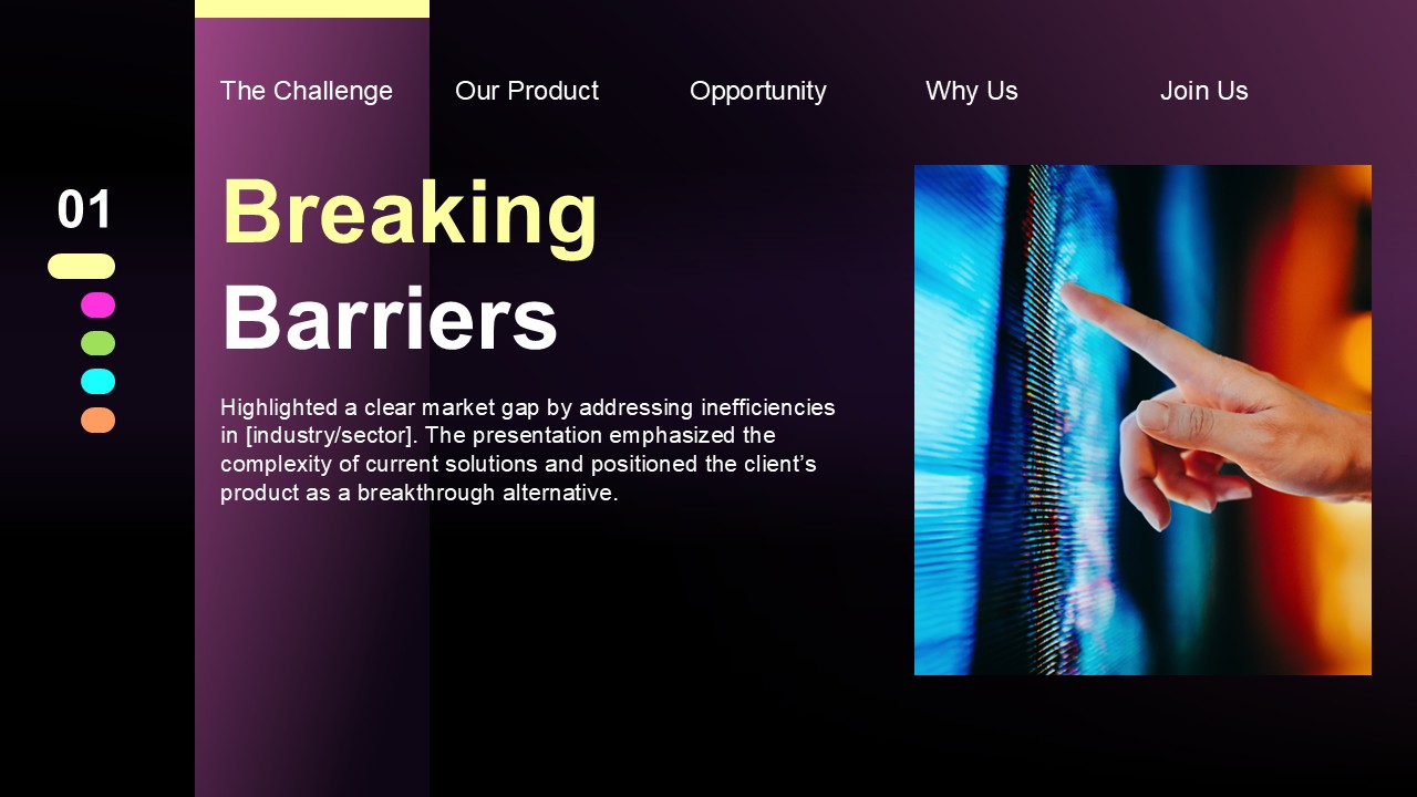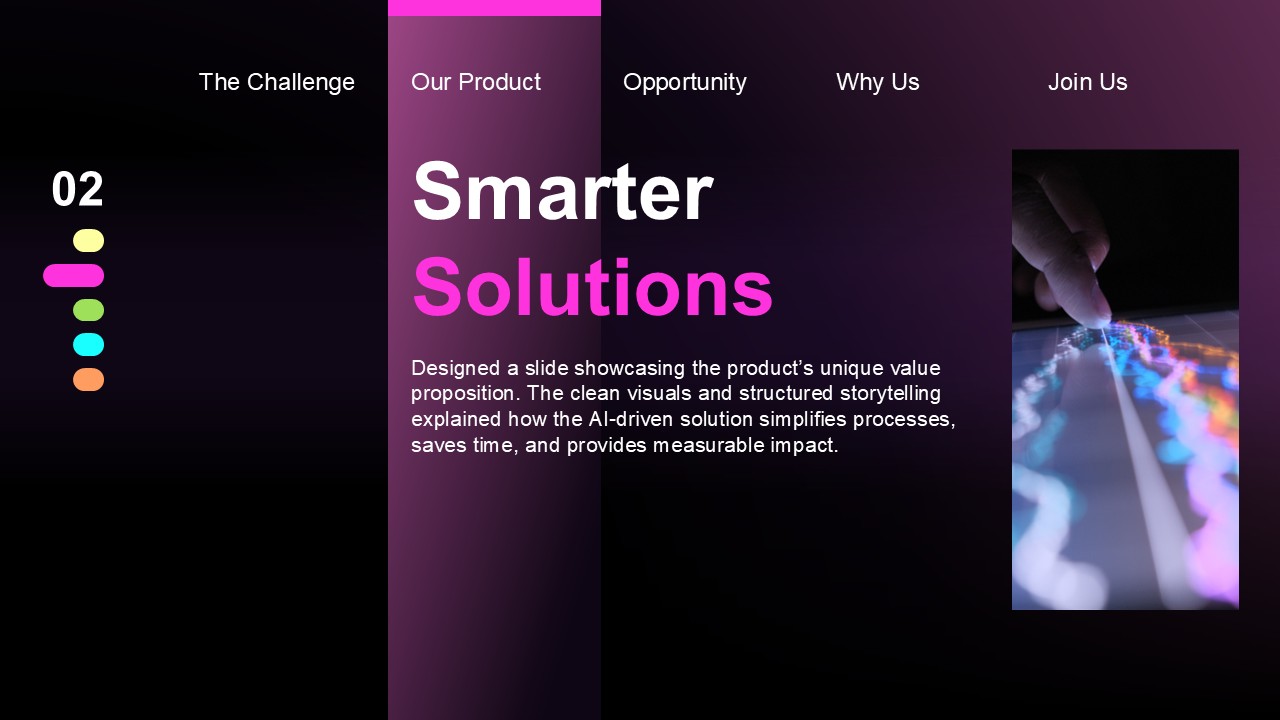 Create a compelling pitch deck for a tech startup seeking Series A funding. The presentation needed to capture attention quickly, communicate the value proposition with clarity, and leave investors genuinely excited about the opportunity.
